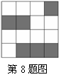 如图,一飞镖游戏板,其中每个小正方形的大小相等,则随意投掷一个飞镖,击中黑色区域的概率是 ( )