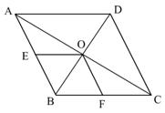 2、在如图菱形ABCD中,对角线AC、BD相交于O,E、F分别是AB、BC的中点。求证:OE