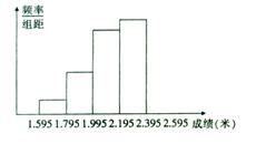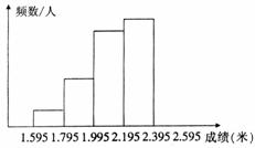 员体育锻炼,并定期进行体能测试,下图是将某班学生的立定跳远成绩(精确到0.01米)进行整理后,画出的频数分布直方图的一部分,已知从左到右4个小组的频率分别是0.05,0.15,0.30,0.35,第5小组的频数9.