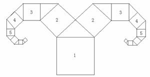 3.图示是一种“羊头”形图案,其作法是,从正方形1开始,以它的一边为斜边,向外作等腰直角三角形,然后再以其直角边为边,分别向外作正方形2,和2′,…,依次类推,若正方形7的边长为1cm,则正方形1的边长为__________cm.