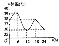 (科内交叉题)一天,亮亮发烧了,早晨他烧得很厉害,吃过药后感觉好多了,中午时亮亮的体温基本正常,但是下午他的体温又开始上升,直到半夜亮亮才感觉身上不那么烫了.如图所示是亮亮体温的变化图.