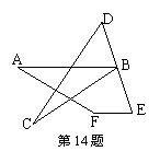 14.如图,∠A+∠ABC+∠C+∠D+∠E+∠F=_____________度。