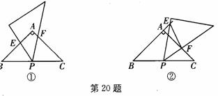 20.(12分)如图,在等腰Rt△ABC中,∠A=90°,P为BC的中点,小明拿着含45°角的透明三角板,使45°角的顶点落在点P,且绕P旋转.
