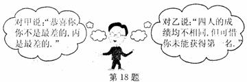 18.甲、乙、丙、丁四人参加某校招聘教师的考试,试后甲、乙两人去询问成绩.请你根据下面回答者对甲、乙两人回答的内容进行分析.判断这四人的名次排列共可能有______种不同的情况.