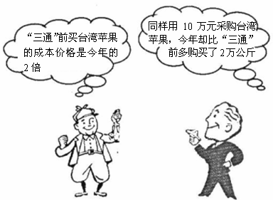 26.(9分)(09年辽宁省朝阳市中考题)海峡两岸实现“三通”后,某水果销售公司从台湾采购苹果的成本大幅下降.请你根据两位经理的对话,计算出该公司在实现“三通”前到台湾采购苹果的成本价格.