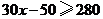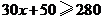 9.小刚准备用自己节省的零花钱购买一台MP4来学习英语,他已存有50元,并计划从本月起每月节省30元,直到他至少有280元.设