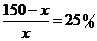 B.150-x=25% C.x=150×25% D.25%·x=150