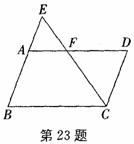 23.(6分)如图,E是□ABCD的边BA延长线上的一点,连接EC,交AD于点F.在不添加辅助线的情况下,莉莉在图中找出了3对相似三角形,她的结论对吗?请你找出图中所有的相似三角形,并对其中的1对相似三角形说明理由.