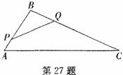27.(10分)如图,在△ABC中,AB=8 cm,BC=16 cm,点P沿AB边向点B以2 cm/s