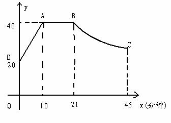 24.(6分)心理学家研究发现,在一节45分钟的课中,学生的注意力随教师讲课的时间的变化而变化,开始学生的注意力逐渐增强,中间学生的注意力保持稳定的状态,随后开始分散,经实验学生的注意力指数y随时间x(分钟)的变化规律如图所示。