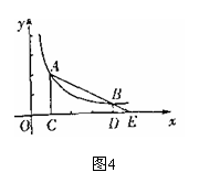 的图象上的两点.AC、BD都垂直于x轴,垂足分别为C、D.AB的延长线交x轴于点E.若C、D的坐标分别为(1,0)、(4,0),则ΔBDE的面积与ΔACE的面积的比值是 ( )