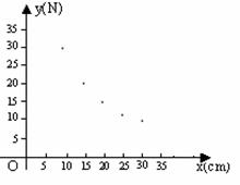 (1)把上表中x,y的各组对应值作为点的坐标,在坐标系中描出相应的点,用平滑曲线连接这些点并观察所得的图象,猜测y(N)与x(cm)