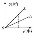 3.两个物体A,B所受压强分别为PA(帕)与PB(帕)(PA,PB为常数),它们所受力面积S(米2)与受压力F(牛)的函数关系图象分别是如图7-5-4所示的射线LA,LB,则( )