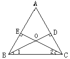 分析:欲证OB=OC可证明∠1=∠2,由已知发现,∠1,∠2均在直角三角形中,因此证明△BCE与△CBD全等即可