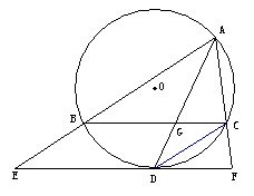 (2)过点D作EF∥BC,分别交AB、AC的延长线于点E、F。求证:EF与⊙O相切。