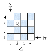 ②如图丙也是一个4×4的小方格棋盘,请在这个棋盘中放入四个“皇后Q”,使这四个“皇后Q”之间互不受对方控制(在图丙中的某四个小方格中标出字母Q即可).