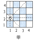 (1)国际象棋、中国象棋和围棋号称世界三大棋种. 国际象棋中的“皇后”的威力可比中国象棋中的“车”大得多:“皇后”不仅能控制她所在的行与列中的每一个小方格,而且还能控制“斜”方向的两条直线上的每一个小方格.如图甲是一个4×4的小方格棋盘,图中的“皇后Q”能控制图中虚线所经过的每一个小方格.