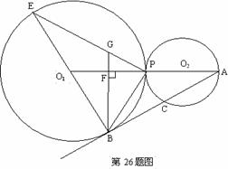 如图:⊙O1与⊙O2外切于点P,O1O2的延长线交⊙O2于点A,AB切⊙O1于点B,交⊙O2于点C,BE是⊙O1的直径,过点B作BF┴O1P,垂足为F,延长BF交PE于点G.