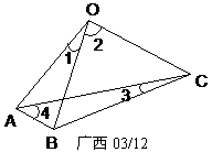 4. (广西03/12)如图,四边形OABC中,OA=OB=OC,∠2是∠1的4倍,那么∠4是∠3的 倍。##2 提示:A、B、C三点共圆,为什么?##