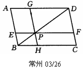 (常州03/26)如图,在平行四边形ABCD中,EF∥BC,GH∥AB, EF、GH的交点P在BD上图中有 对四边形面积相等;