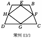 8. (常州03/3)如图,梯形ABCD中,AB∥DC, E、F、G、H分别是边AB、BC、CD、DA的中点,梯形ABCD的边满足条件 时,四边形EFGH是菱形。## 答:AD=BC