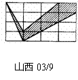 6. (山西03/9)如图是阳光广告公司为某种商品设计的商标图案,图中阴影部分为红色。若每个小长方形的面积都1,则红色的面积是 。 ## 答:5 ##