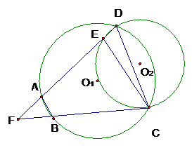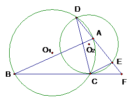 26.(本题6分)如图,⊙O2与⊙O1 的弦BC切于C点,两圆的另一个交点为D,动点A在⊙O1,直线AD与⊙O2交于点E,与直线BC交于点 F 。
