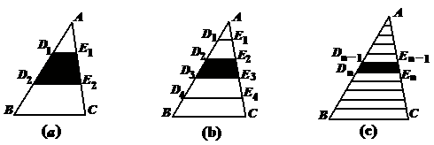 (1)如图(a),将AB三等分,D1、D2是三等分点,且D1E1∥D2E2∥BC,求梯形D1E1E2D2