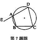 7.如图,四边形ABCD为圆内接四边形,E为DA延长线上一点,若∠C=50°,则∠BAE为( ).