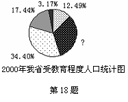 18.第五次全国人口普查资料显示,2000年我省总人口为786.5万,题图中表示我省2000年接受初中教育这一类别的数据丢失了,那么,结合图中的信息,可推知2000年我省接受初中教育的人数为( )