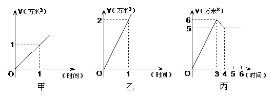 17.某水电站的蓄水池有2个进水口,1个出水口,每个进水口进水量与时间的关系如图甲所示,出水口出水量与时间的关系如图乙所示.已知某天0点到6点,进行机组试运行,试机时至少打开一个水口,且该水池的蓄水量与时间的关系如图丙所示:
