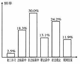 某县教育局专门对该县2004年初中毕业生毕业去向做了详细调查,将数据整理后,绘制成统计图如下。根据图中信息回答: