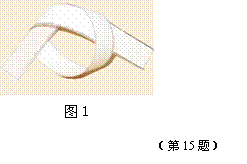 15. 用一条宽相等的足够长的纸条,打一个结,如图(1)所示,然后轻轻拉紧、压平就可以得到如图(2)所示的正五边形ABCDE,其中∠BAC= 度.