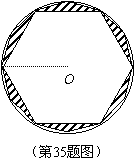 35. 如图,正六边形与正十二边形内接于同一圆⊙O中,已知外接圆的半径为2,则阴影部分面积为_________.