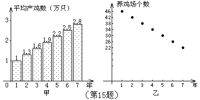 15. 甲、乙两人连续7年调查某县养鸡业的情况,提供了两方面的信息图(如图)。