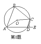 8. 如图,四边形ABCD内接于⊙O,E是AD延长线上一点,若∠AOC=140°,则∠EDC的度是