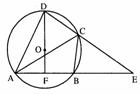 (本小题满分6分)已知:如图,圆内接四边形ABCD的两边AB、DC的延长线相交于点E,DF过圆心O交AB于点F,AB=BE,连结AC,且OD=3,AF=FB=