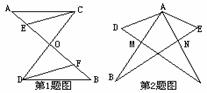 1.已知:如图,AB、CD相交于点O,AC∥DB,OC=OD,E、F为AB上两点,且AE=BF,求证:CE=DF
