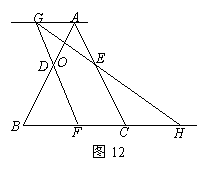 已知:如图12,等边三角形ABC的边长为6,点D,E分别在边AB,AC上,且AD=AE=2.若点F从点B开始以每秒1个单位长的速度沿射线BC方向运动,设点F运动的时间为t秒.当t>0时,直线FD与过点A且平行于BC的直线相交于点G,GE的延长线与BC的延长线相交于点H,AB与GH相交于点O.