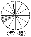 16. 右图是一个被等分成12个扇形的转盘。请在转盘上选出若干个扇形涂上斜线(涂上斜线表示阴影区域,其中有一个扇形已涂),使得自由转动这个转盘,当它停止转动时,指针落在阴影区域的概率为