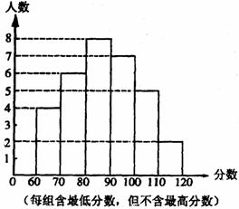 21、某中学部分同学参加全国初中数学竞赛,取得了优异的成绩.指导老师统计了所有参赛同学的成绩(成绩都是整数,试题满分120分),并且绘制了“频数分布直方图”(如图).