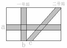 (8分)如图8,在长300米、宽200米的长方形场地上修了三条不同形状的小路,剩余部分作为绿化区种植花草。已知三条小路的宽a、b、c都相等,且各条小路的两边分别平行。(1)请你通过观察和分析、判断1号路与2号路的面积有否相等?并简要说明理由; (2)若使绿化面积为53200米2,试求路的宽度。
