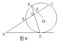 27、如图9,割线ABC与⊙O相交于B、C两点,D为⊙O