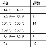 6、光明中学为了了解本校学生的身体发育情况,对同年龄的40名女学生的身高进行了测量,结果如下(数据均为整数,单位:cm):
