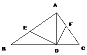 22、如图,AD是Rt△ABC斜边上的高,DE⊥DF,且DE和DF分别交AB,AC于E、F。