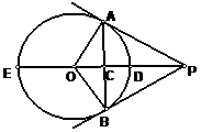 11. 已知:如图,PA、PB是⊙O的两条切线,A、B为切点,直线OP交⊙O于点D、E,交AB于C。写出图中所有的垂直关系 。