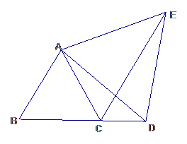 如图,D为BC延长线上一点,△ABC、△ADE均为等边三角形,猜想EC与AB的位置关系,并证明你的猜想。