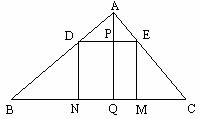 如图,正方形DEMN内接于△ABC,AQ⊥BC于Q交DE于P,若BC=120,AQ=8,则正方形边长为_________。