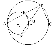 10.已知:如图,ΔABC内接于⊙O,AC是⊙O的直径,以AO为直径的⊙D交AB于E,交BO的延长线于F,EG切⊙D于E,交OB于G,求证:(1)AE=BE,(2)EG⊥OB,(3)2AE2=GF•AC