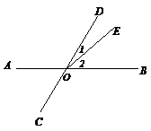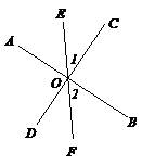 10、如图,直线AB、CD、EF交于O,且AB⊥CD,∠1=400,求∠2的度数。